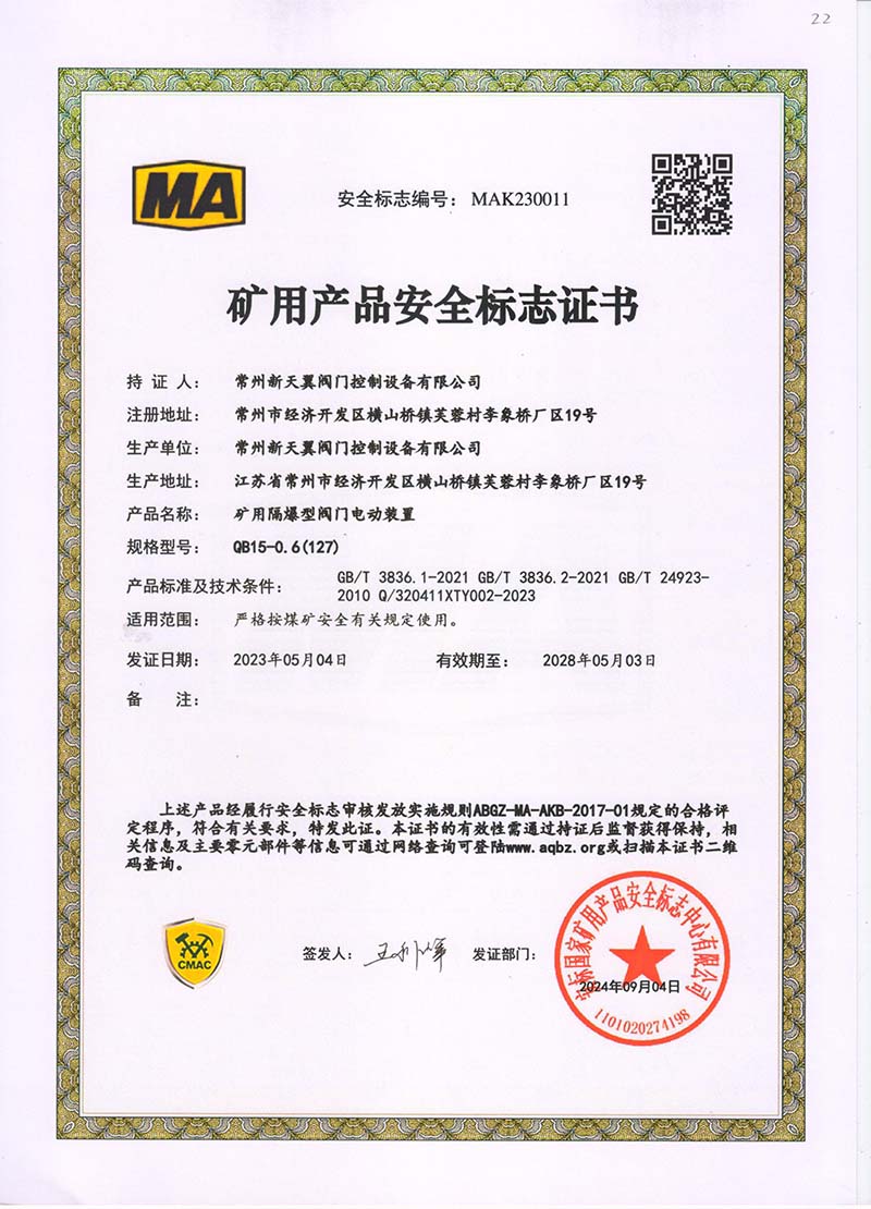 礦用產(chǎn)品安全標(biāo)志證書ZB30-24 200(660)