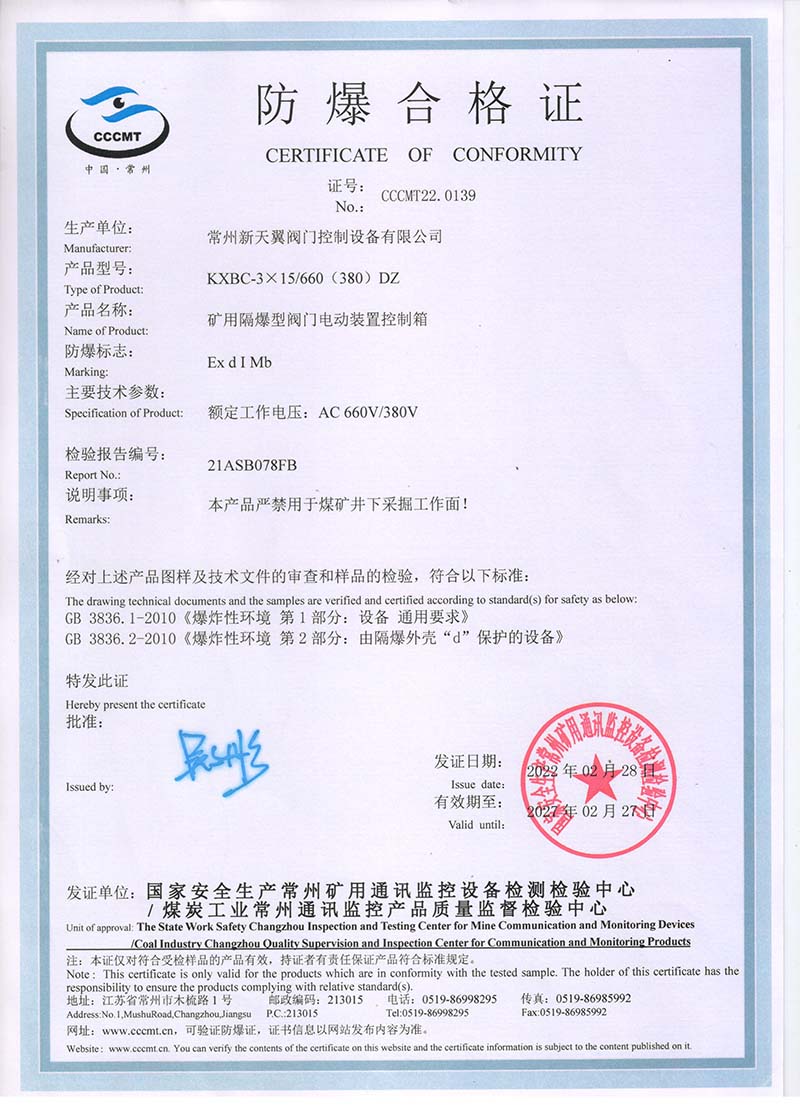 礦用隔爆QB127V中國國家強(qiáng)制性產(chǎn)品認(rèn)證證書105.2