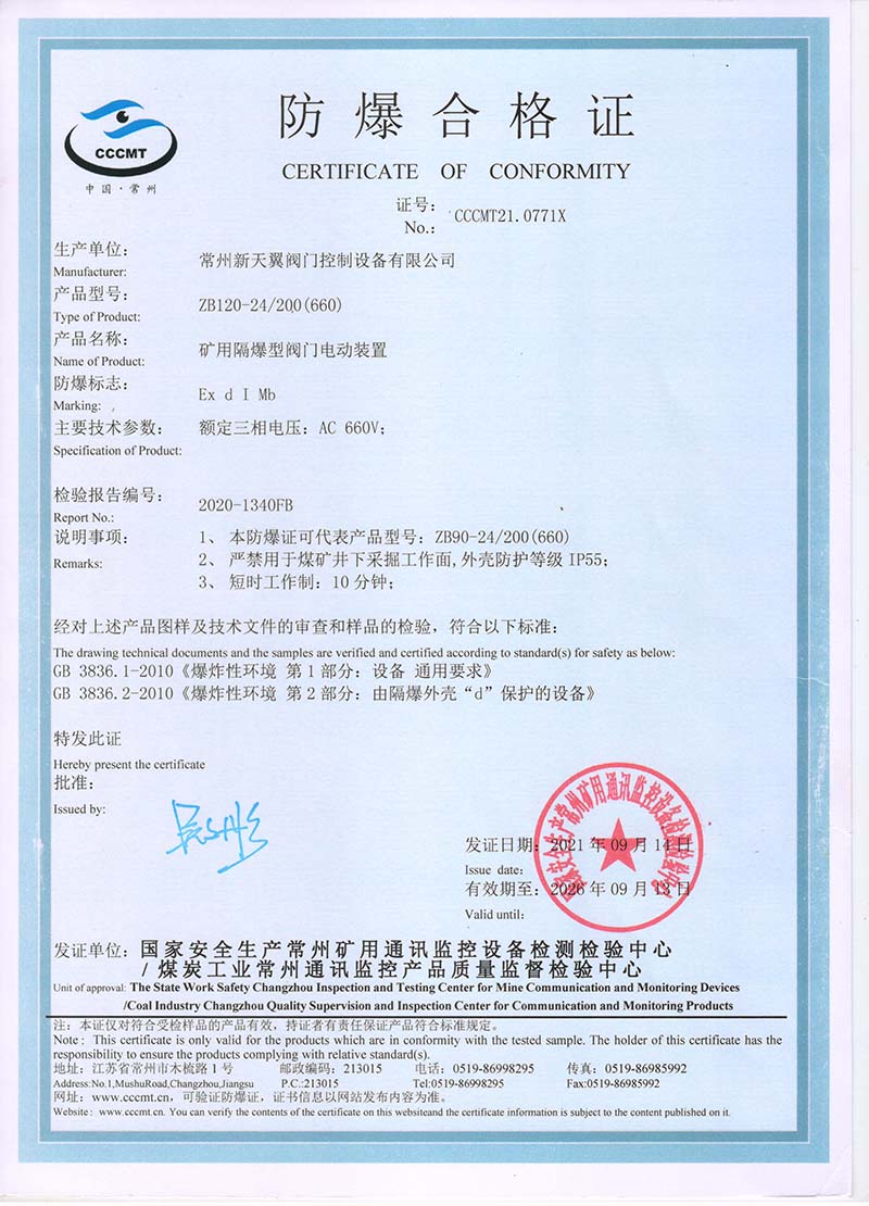 礦用產(chǎn)品安全標(biāo)志證書ZB120-24 200(660)